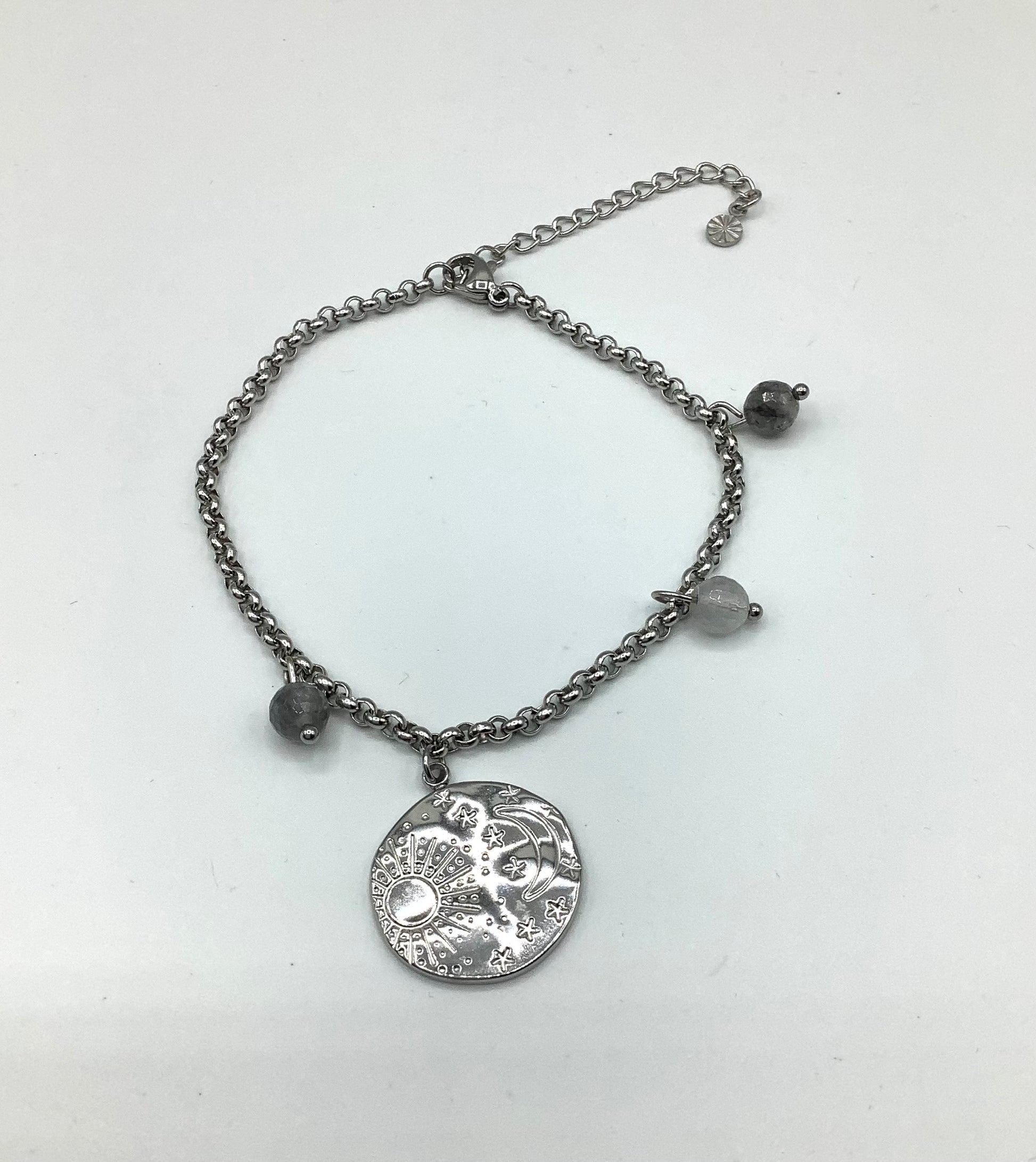 Bracciale Sole & Luna con ciondolo…Acciaio inossidabile…e perline in Agata grigia…Lunghezza cm 19,50 + cm 5 di allungamento…Hand Made ❤️