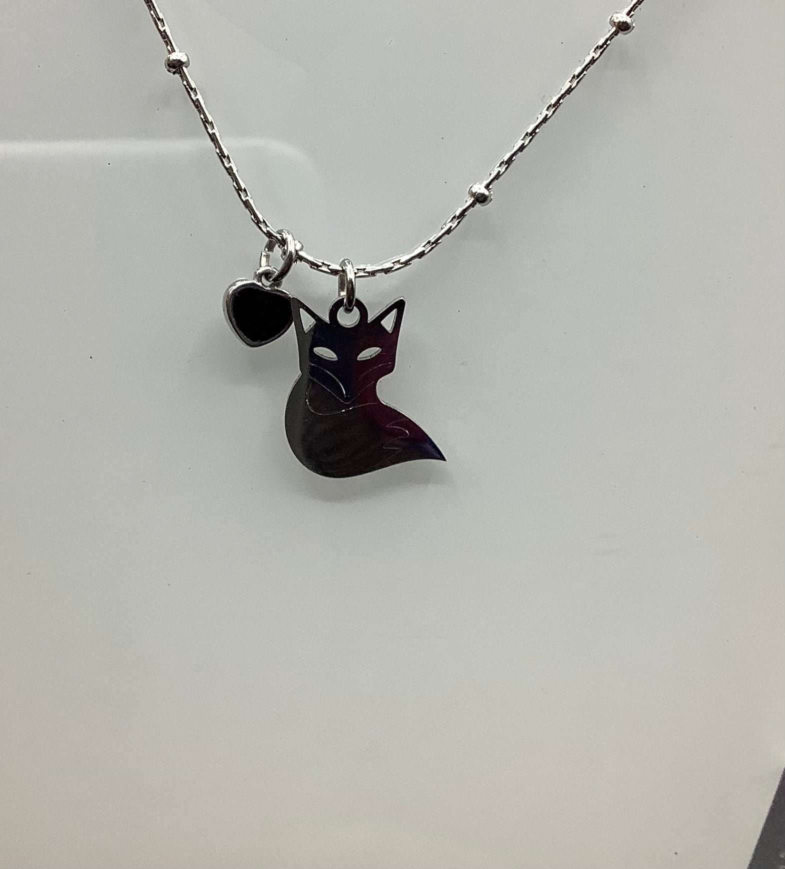 Collana con 2 charms..1 sagoma di volpe cm 1,5…1 cuoricino smaltato cm 0,50…Lunghezza cm 40 + cm 5 dí allungamento…Acciaio inossidabile…Hand Made ❤️