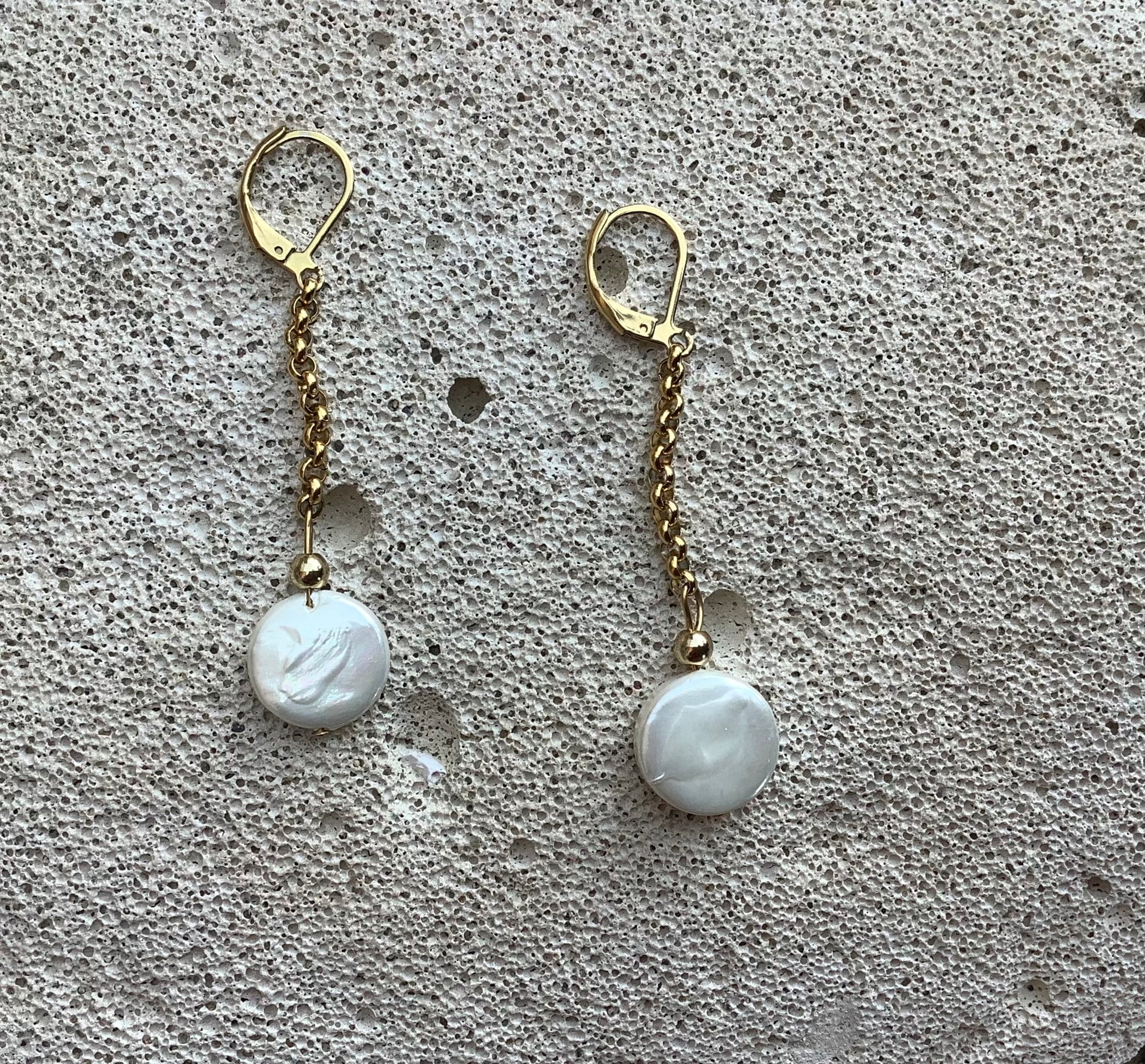 Orecchini pendenti…catena rolo’ e perle barocche di acqua dolce…Lunghezza cm 4,5…Hand Made ❤️